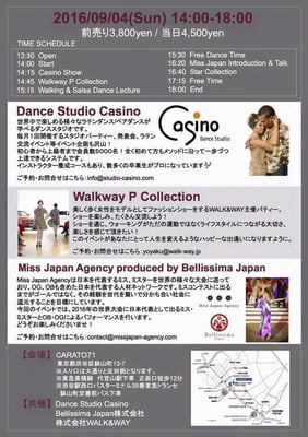 2016年9月4日、渋谷区代官山にあるCARATO71にてダンススタジオカシーノ×WALK&WAY×Miss Japan Agencyのコラボ企画でイベントが開かれました!!